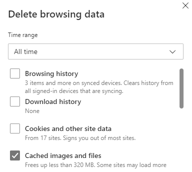 - In the pop-up window, select "Cached images and files" on time range "All Time" and click on